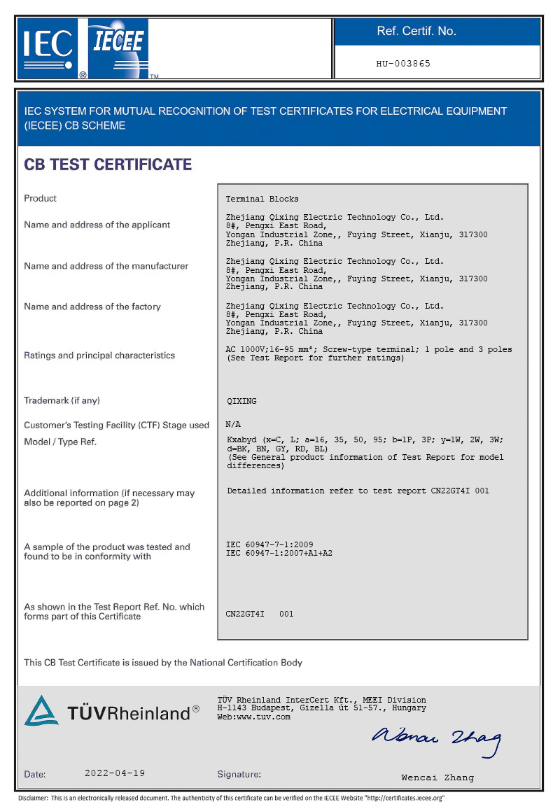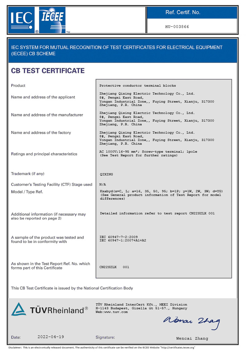 Our company focus on bringing in advanced technology and equipment, which adheres to the IS09001:2015 international quality system and quality certification.To be a export-oriented enterprises, QIXING also get international agencies of Product Certification in the following relevant fields: CB , CE , CVC , TUV , UL, SEMKO , ROHS.