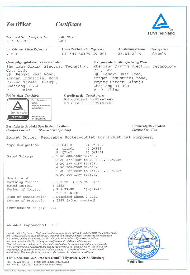 TAIZHOU BAOLUDA ELECTRIC TECHNOLOGY CO..LTD is one of the leader manufacturers of IEC60309 electrical connecting device with great variety.QIXING is specialized in industrial plugs, sockets, coupler(connector)and so on.